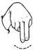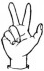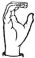На ћирилици написано САНДРА БУЊЕВАЦ састоји се из 13 слова [?]. Исписано ћириличном једноручном азбуком за глувонеме: